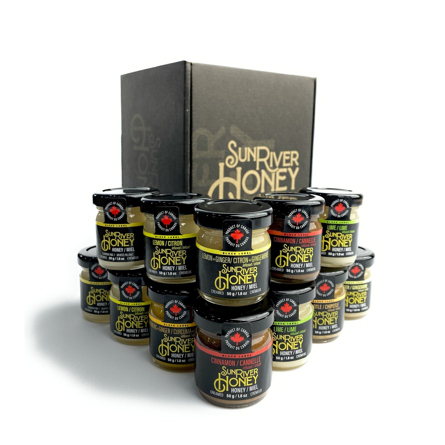 A perfect gift for the honey-lover in your life, or even yourself! The new Sun River Honey Mini Sampler Gift Set features 12 mini jars of the same unpasteurized, soft and spreadable honey that you know and love! A great way to sample new flavors, you could gift someone special with the entire collection, or save your favorite flavors for yourself!